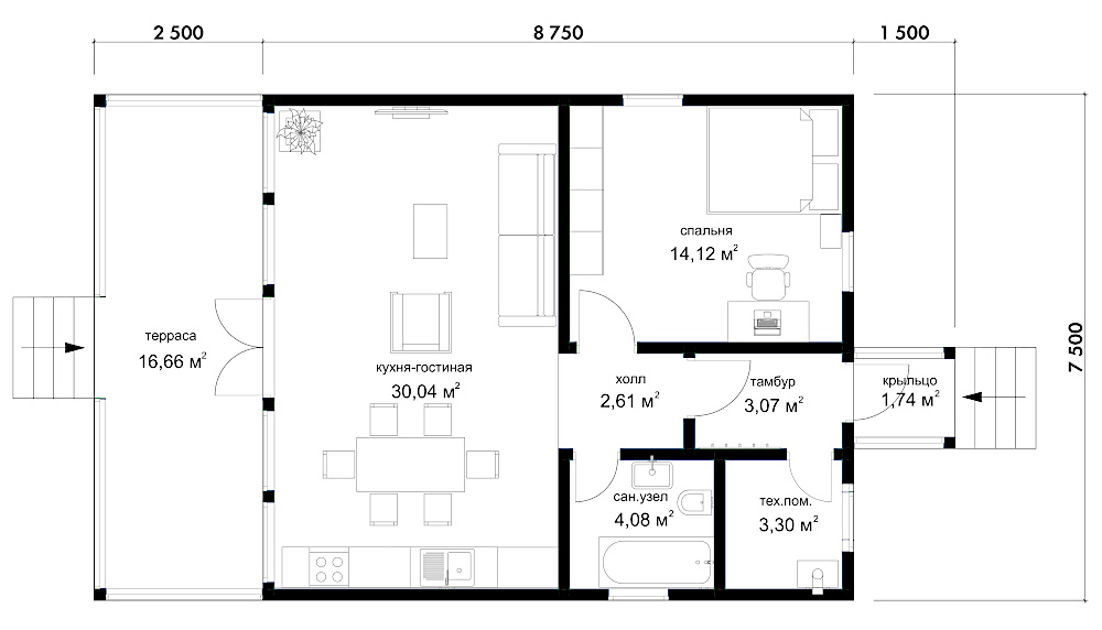 2. Кухня-гостиная 30,04м2