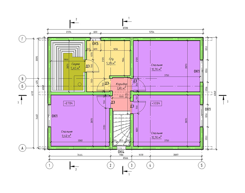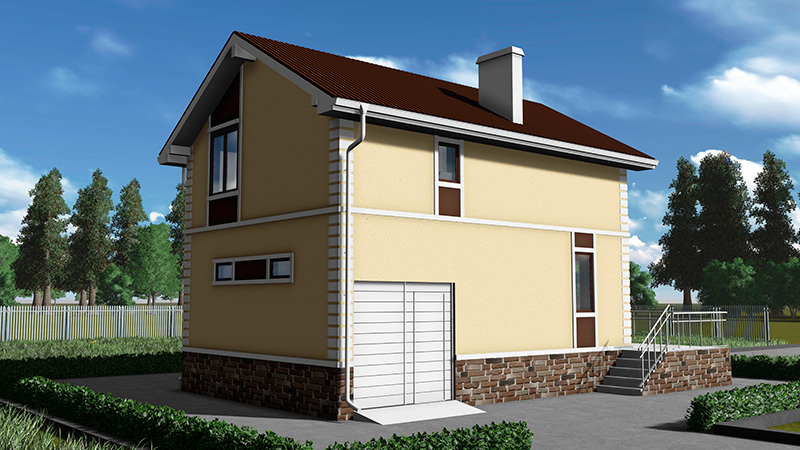 Фундамент — деревянный ростверк на винтовых сваях, монолитная плита под гараж.