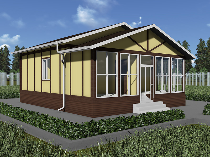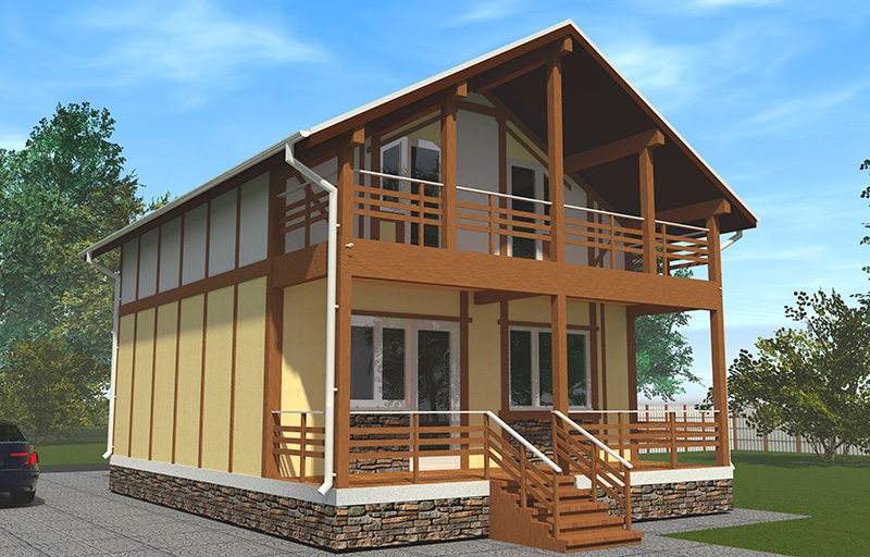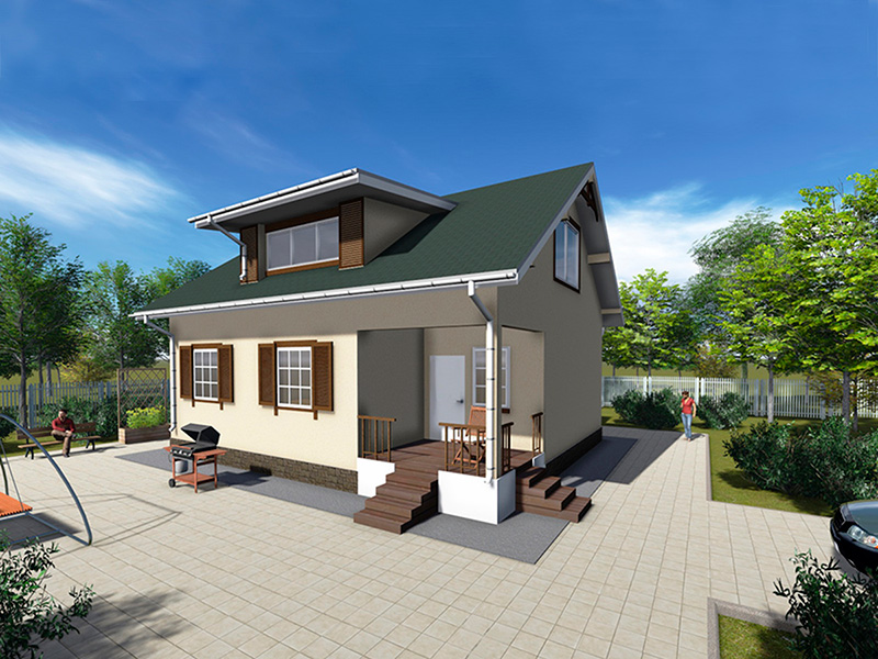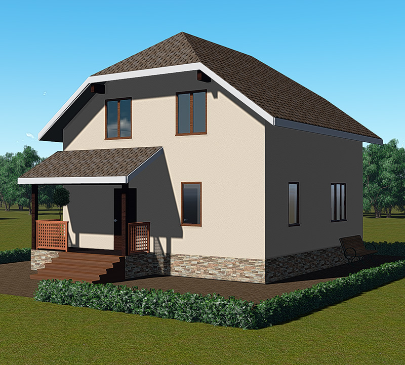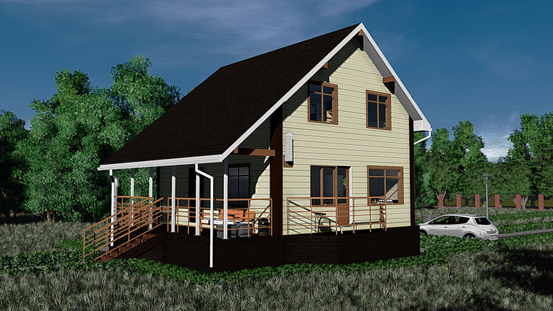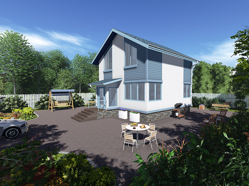 Дом для семьи из 3-4 человек. Отличается наличием гаража и простотой и лаконичностью форм.