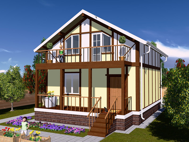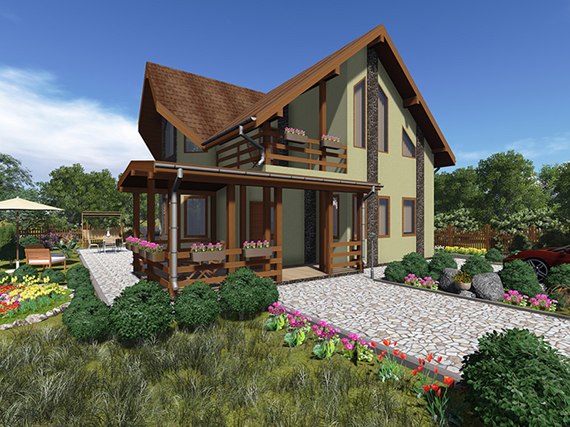 Уютный двухэтажный дом — прекрасный вариант для проживания небольшой семьи.